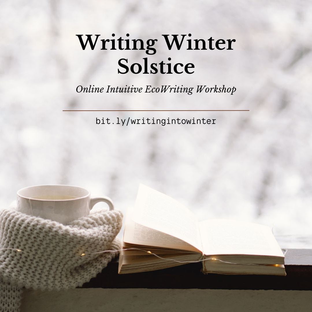 A Winter Solstice Writing session in three parts mirroring the solstice sun. Gaze into the darkness, restore in the stillness and revive in the new light. A 90-minute asynchronous generative micro-writing class great for memoirists, nature writers, ecopreneurs, or anyone looking to explore their connection to Nature. Utilize meditation and embodiment practices to tap into your creative muse and banish your critical mind that keeps you from writing with your authentic voice. Only $15.