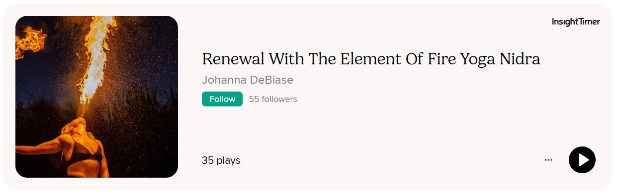 Winter is a time for rest and quiet and what better way to do that than with yoga nidra. Yoga Nidra is a state of consciousness that can be used for deep relaxation, creating new habits, releasing old programming, or reaching states of spiritual awakening. This yoga nidra is great for life transitions or for any time you are ready to release what no longer serves you and renew yourself for new beginnings. Jump into the fire and from the ash, a new fire will alight.