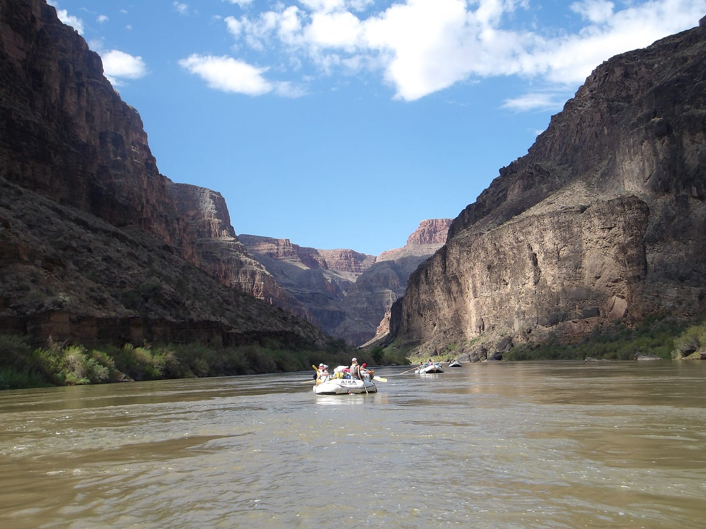 The Colorado River in the Grand Canyon is cold because of the Glen Canyon dam that resides upriver and creates Lake Powell. When the dam releases water, it pulls from the depths of the lake where the water receives no direct sunlight. Before the dam, the river experienced wild seasonal swings, massive floods from snowmelt in the springtime and low flows in all the other seasons, maybe even shallow or dry in drought conditions in winter. Now it is consistent, cold and mostly clear.